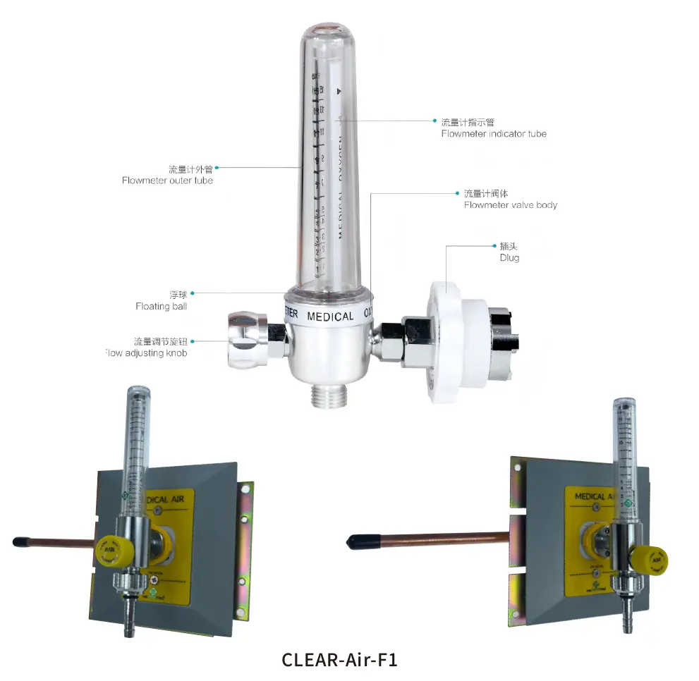 2. Копче за прилагодување на протокот: Адиуст проток лесно, исклучете го протокот без излез на кислород: 0,35 ± 0,05MPa